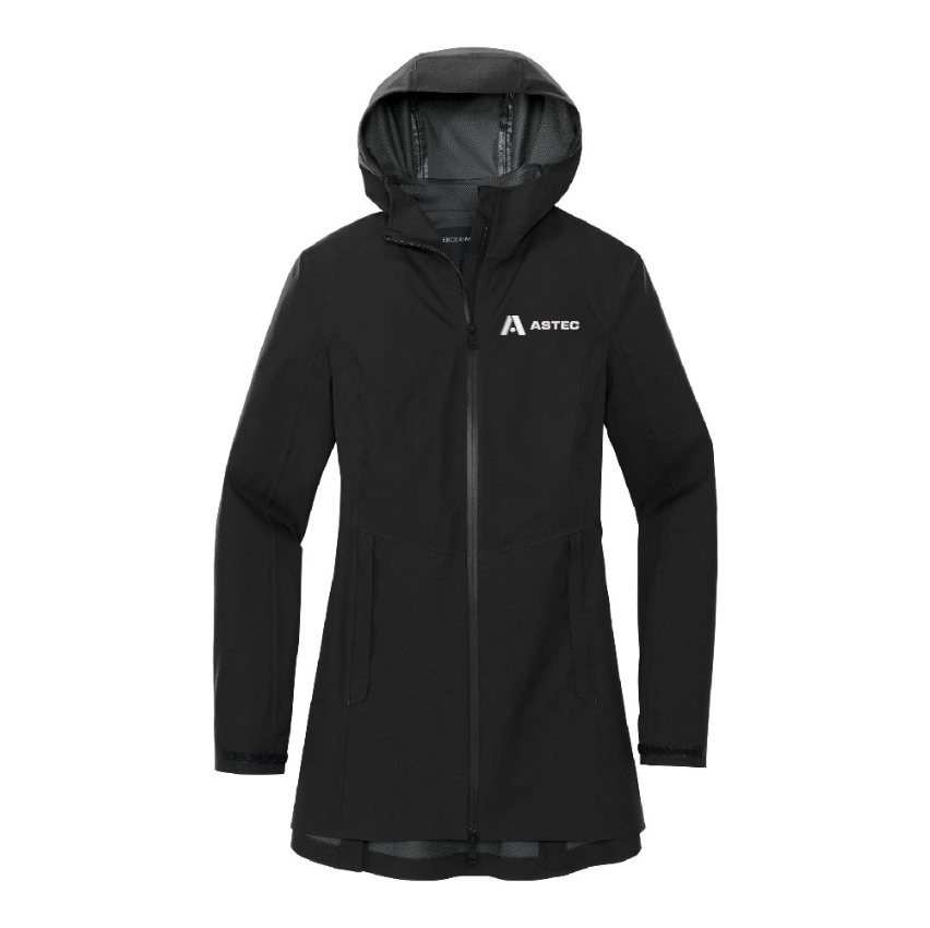 - Adjustable brimmed hood with locking drawcord